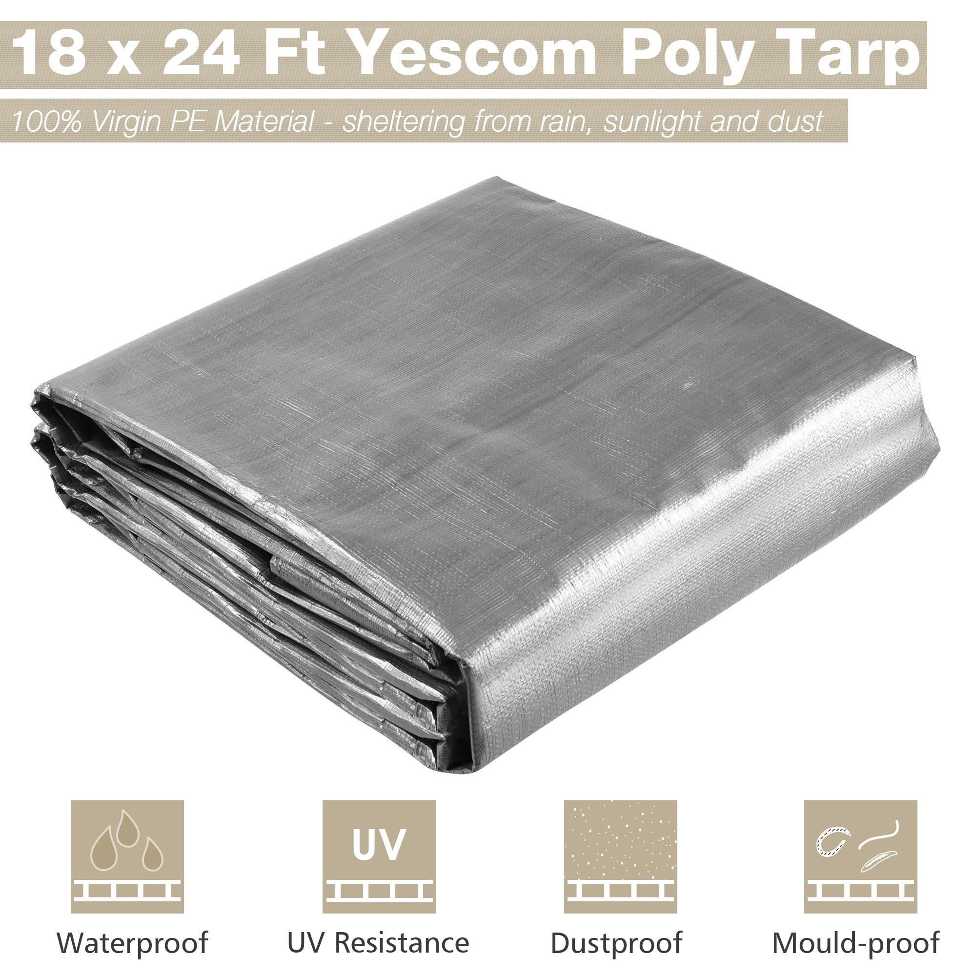 - Strong & Durable Shelter - 18 x 24 ft silver and black poly tarp forms a strong and durable shelter from sunlight; rain and dust; cooler underneath in the summer; Long lifetime up to 3 years; it features good ability of anti-aging for long-time use