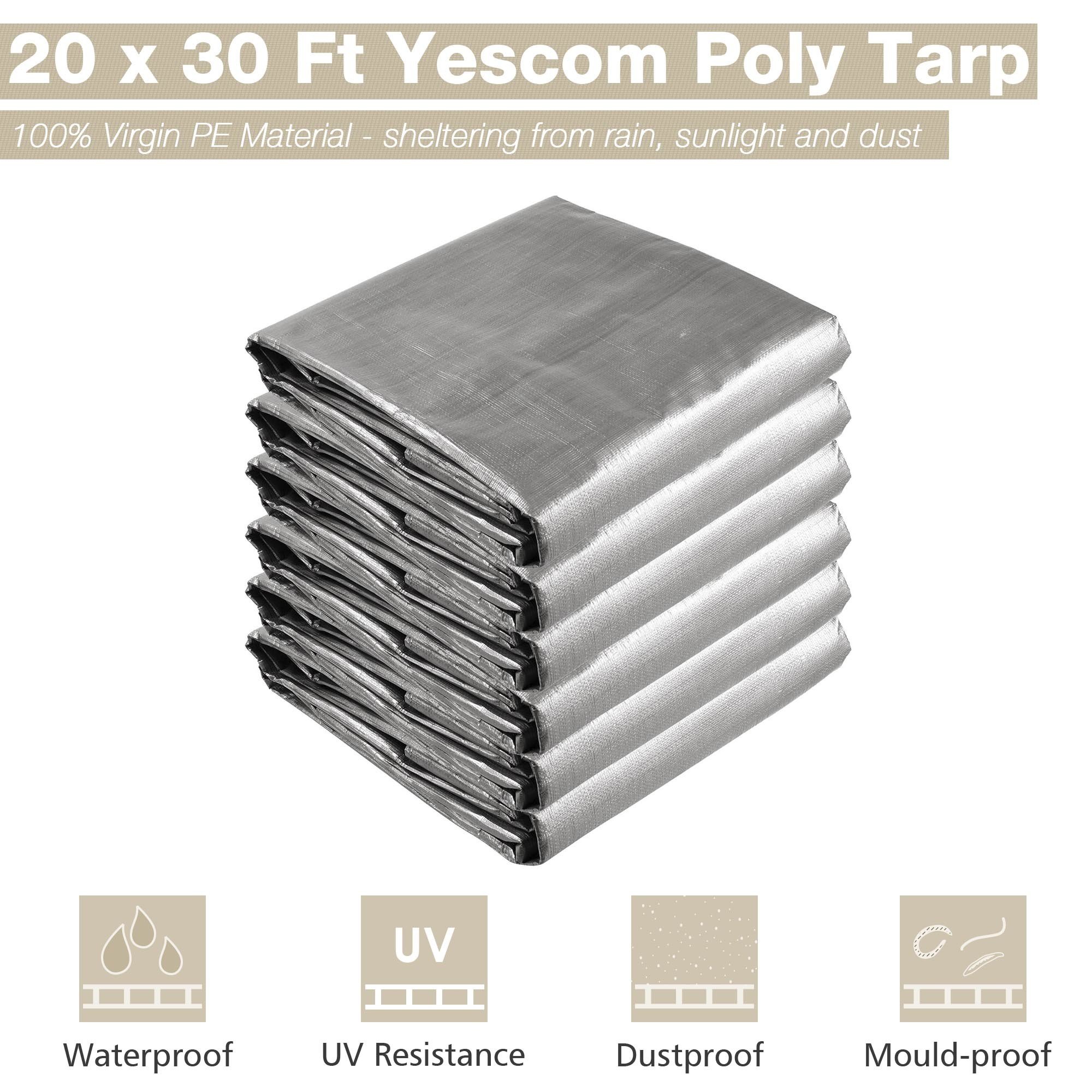 - Strong & Durable Shelter - 20 x 30 ft silver and black poly tarp forms a strong and durable shelter from sunlight; rain and dust; cooler underneath in the summer; Long lifetime up to 3 years; it features good ability of anti-aging for long-time use