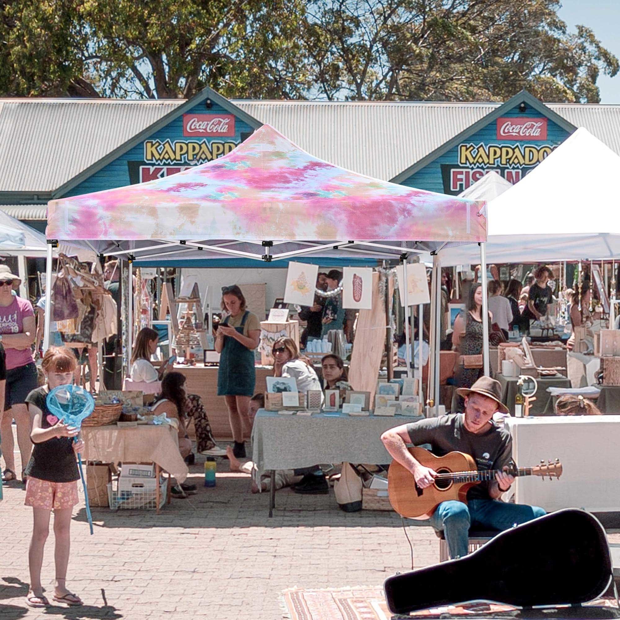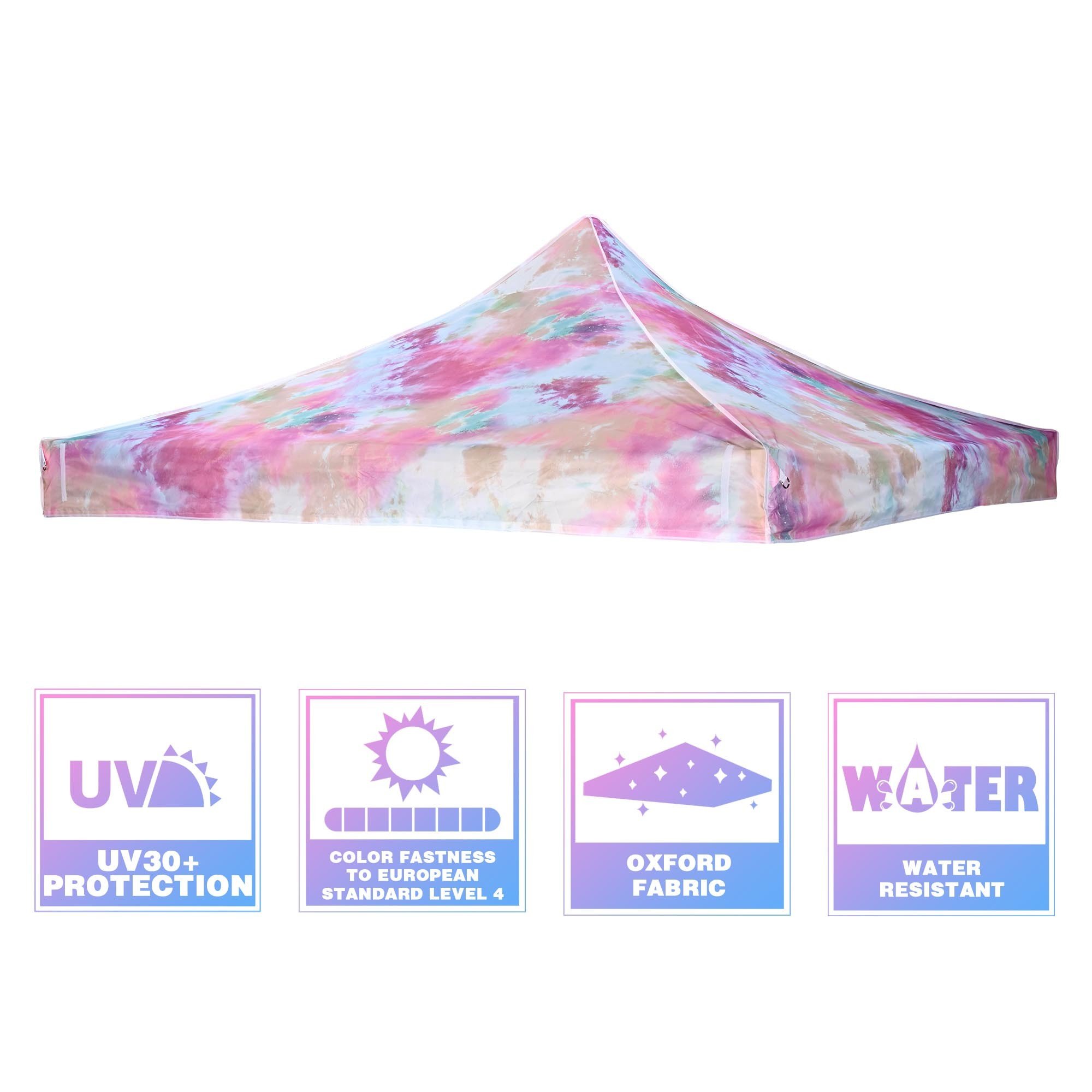 - Universal Replacement Cover - 10x10 ft InstaHibit Replacement Canopy Top fits for 1-tier pop up tent size with length & width from 114 3/16" to 114 9/16", featuring unique tie dye pattern for fresh spring feeling to upgrade your old canopy or as a backup; Perfect for shading in flea market, craft show, art fair, flower market, backyard party, picnic, beach