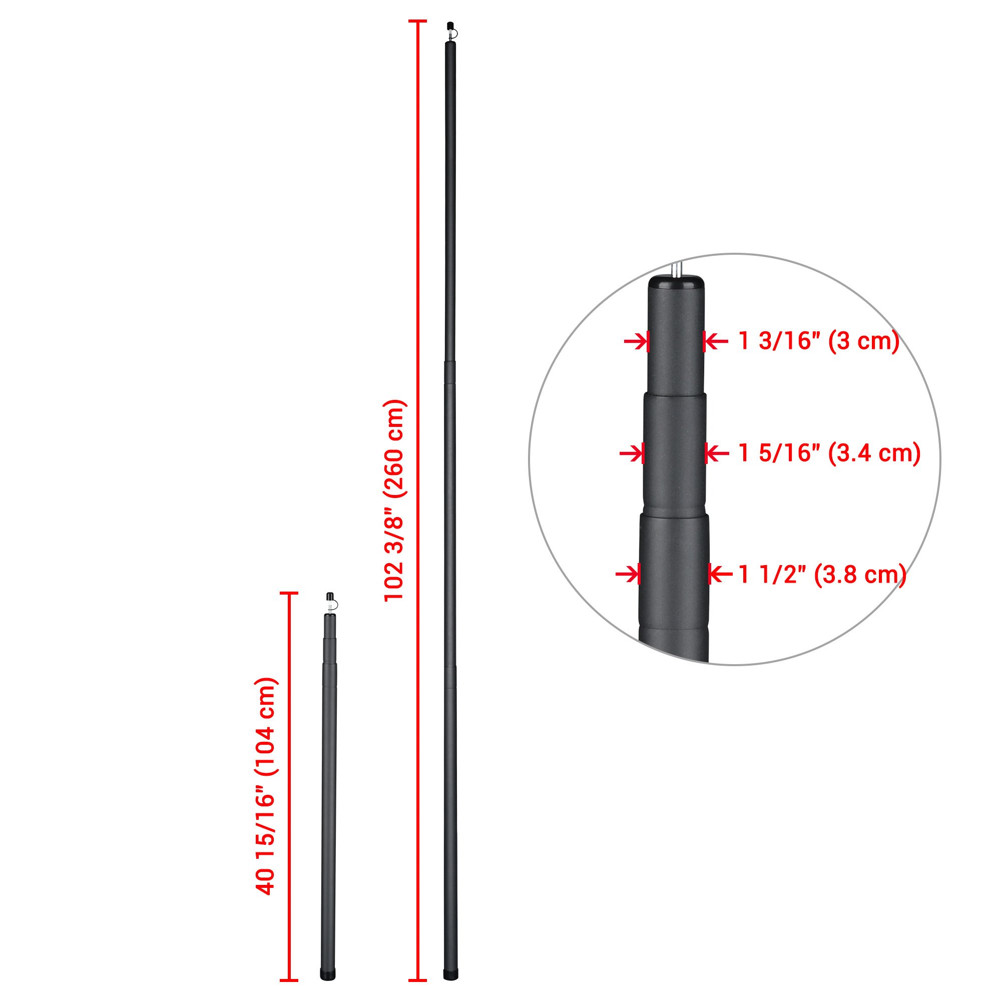 - Adjustment Range: 40 15/16' to 102 3/8' (104 to 260 cm)
