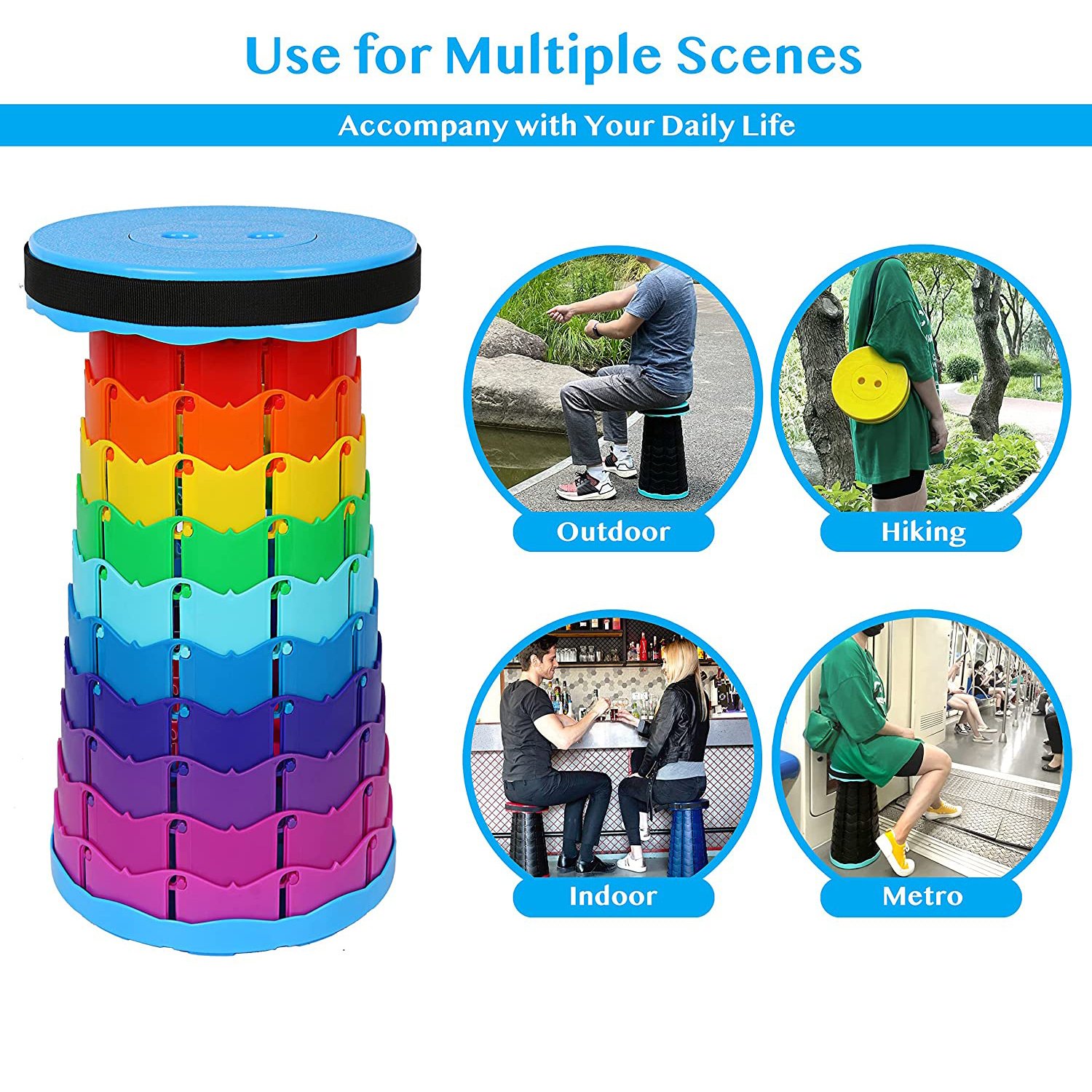 1.High-quality Material: This portable telescopic stool is made of the latest environmentally friendly materials, polymer polypropylene material, which is stronger, more durable, more stable, and lighter!