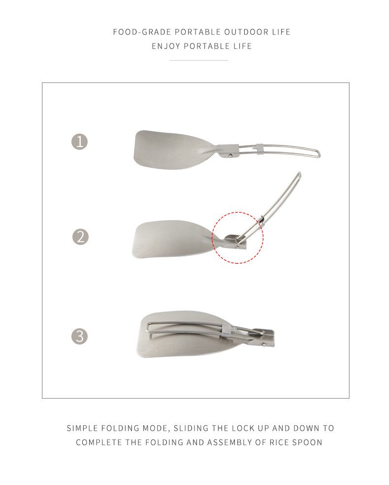 Outdoor folding frying spatula camping portable 304 stainless steel rice spatula barbecue picnic tableware hiking travel funnel